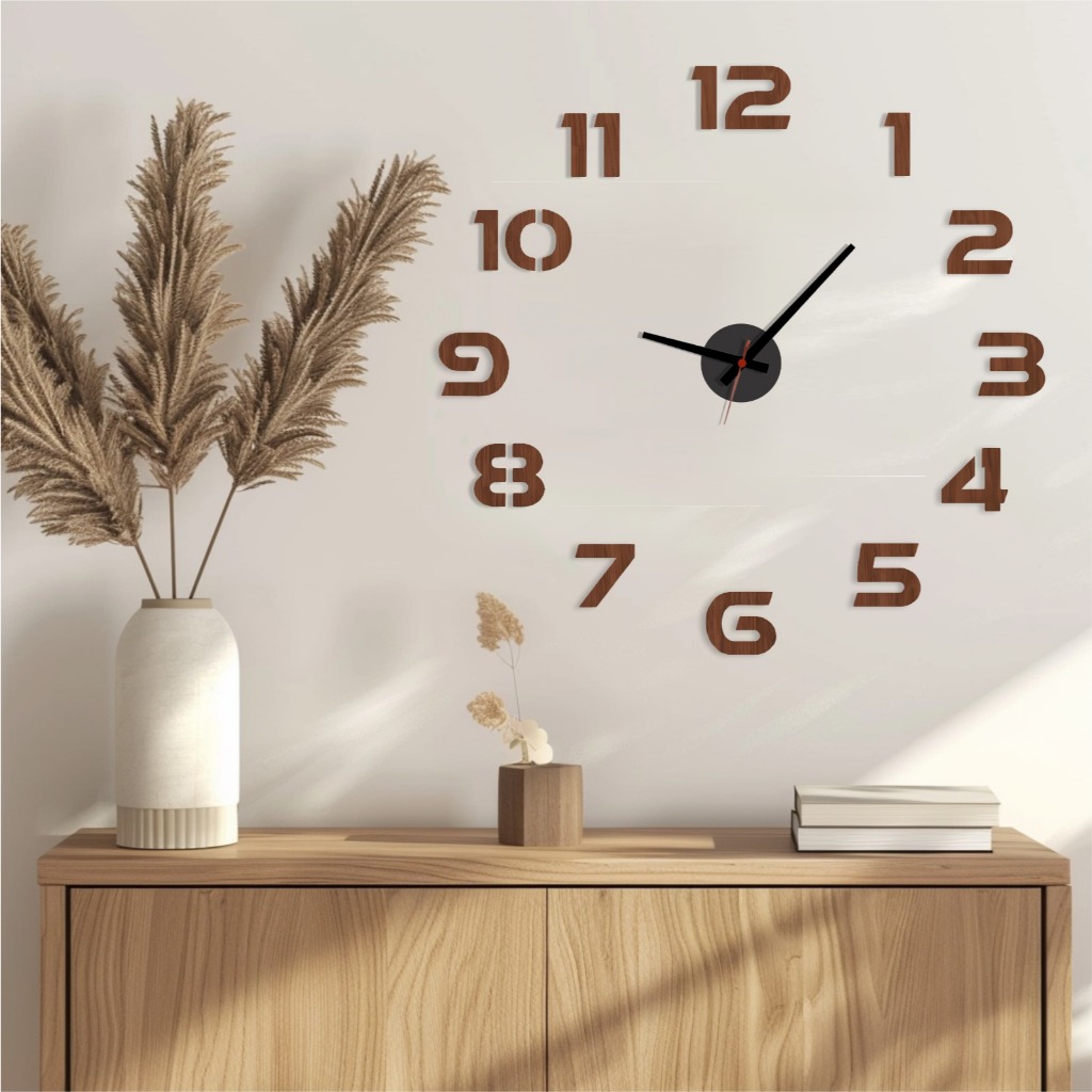 Relógio de parede 3D grande sem moldura, superfície adesiva, decoração de relógio para sala de estar, quarto