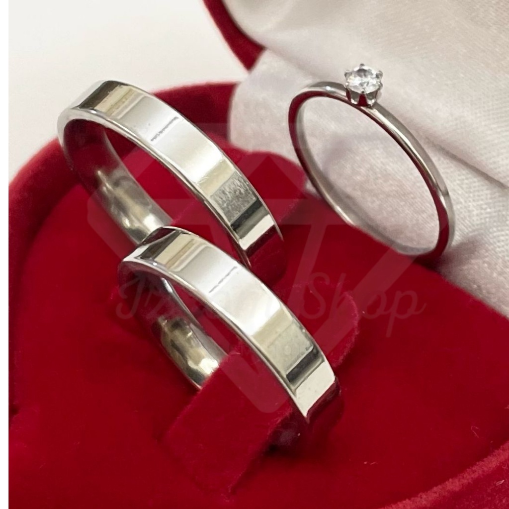 Par De Aliança De Namoro Prata Lisa 6mm + Anel Aço Inoxidável 316L Compromisso Masculino Feminino União Estável Noivado Casamento Solitário 925