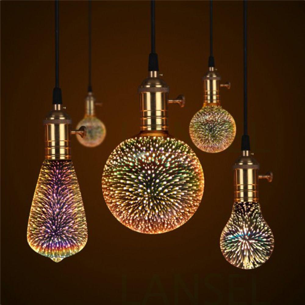 LANSEL Lâmpada De Fogo De Artifício 3D A60/ST64/G80/G95 Decoração De Casa E27 Suporte De Bola Edison