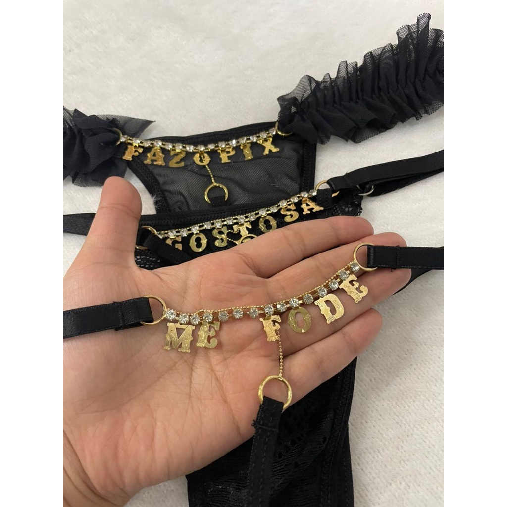 Kit Com 3 Calcinhas Escritas Com Pingentes Variadas