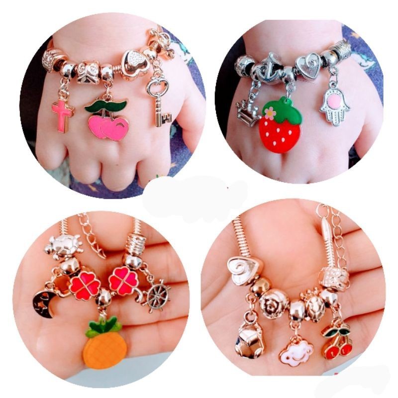Kit 3 Pulseiras Infantil Tipo Pandora Com Pingentes Berloques Crianças Meninas