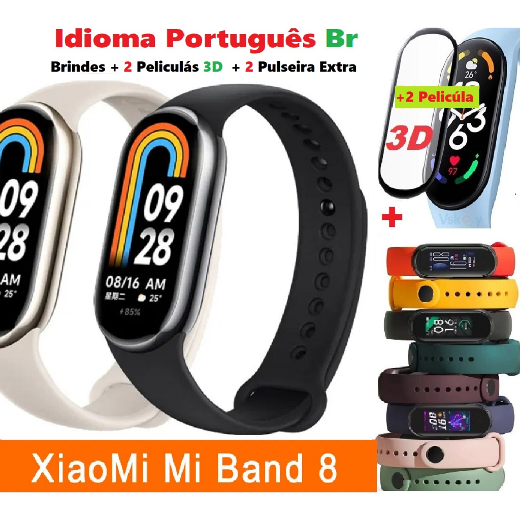 Xiaomi Mi Band 8 Original + 2 Película 3D + 2 Pulseira Extra - Relógio Smartwatch Smart Mi Band 5 6 7 8