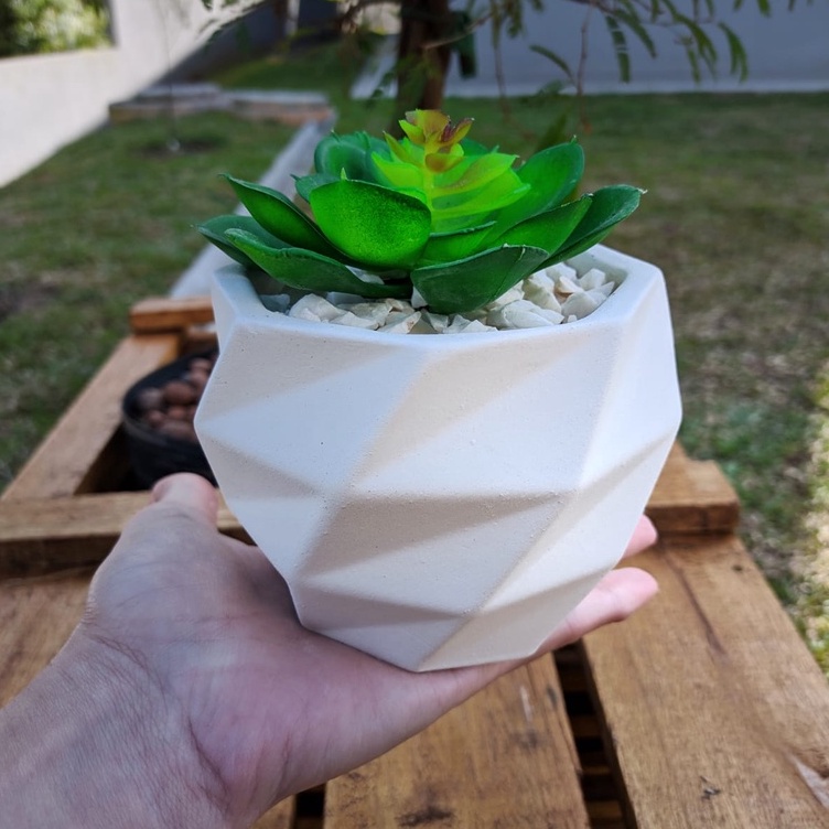 Vaso Poligonal em Cerâmica Cachepot 3D para Planta Suculenta Branco Fosco - Para Pintar