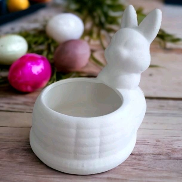 Estátua Porta Chocolate Coelho com cesto da Páscoa Vaso em Cerâmica Branco/fosco para Pintar