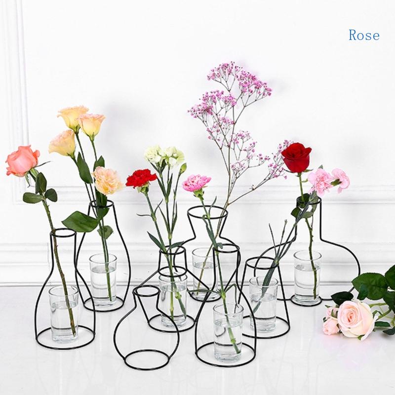 Vaso De Flores De Arame De Ferro Rosa Metal Hidropônico Decoração De Pote Para Festa De Ano Novo Em Casa