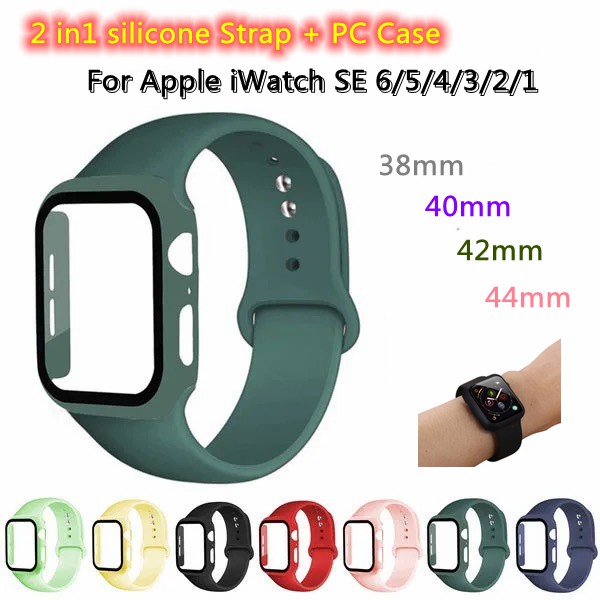 2 in1 Strap + Case Apple watch 7/SE/6/5/4/3/2/1 iWatch Série 41/45mm 38/40mm 42/44mm Suave Banda Da Tampa Do Caso T500 X7 T5 T55 FT50 w26 w46 w56 Cinta