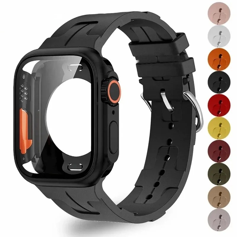 Glass + Case Strap Silicone Original Adaptado A Uma Pulseira De Relógio Apple & Change Para Ultra Caixa 9 8 7 6 SE 5 4 Adaptada i Watch Series 44mm 45mm 40mm 41mm