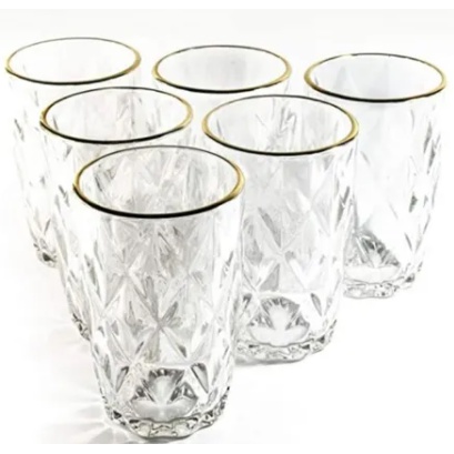 Conjunto 06 Copos Altos De Vidro com fio De Ouro Diamond 350ml