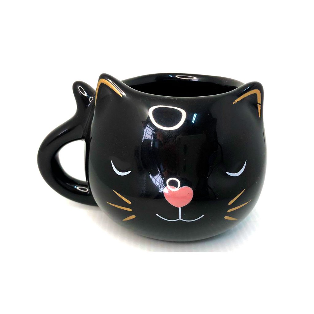 Caneca 3D Gato 380ml Preto Gatinho Cerâmica Pai e Mãe de Pet Miau Xicara Criativa Diferente Presente