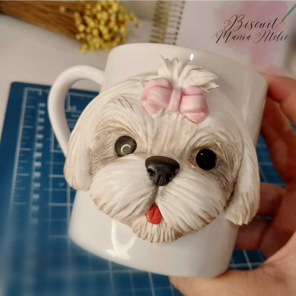 Caneca De Porcelana Personalizada Em Biscuit Pet Gato Cachorro