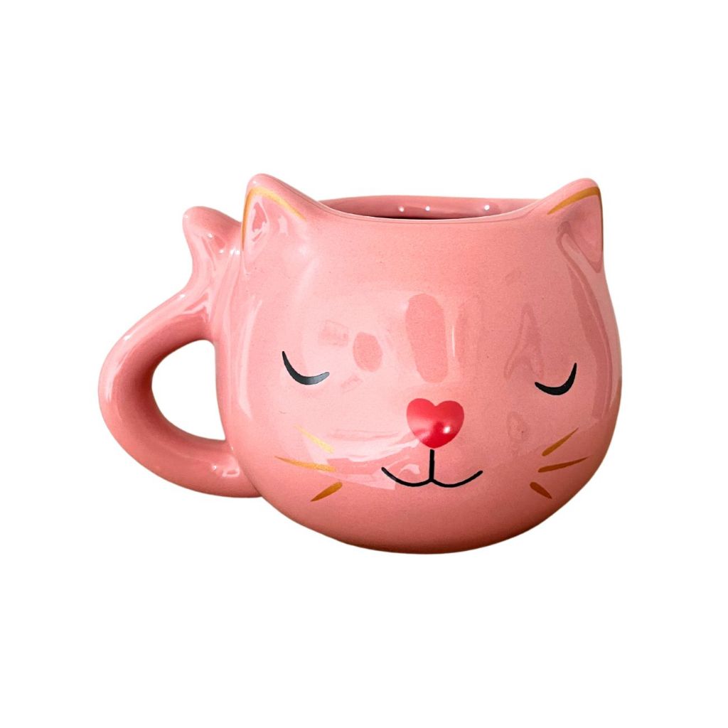 Caneca 3D Gato 380Ml Rosa Personalizada Mãe e Pai de Pet Cerâmica Colecionável Criativa Gatinho