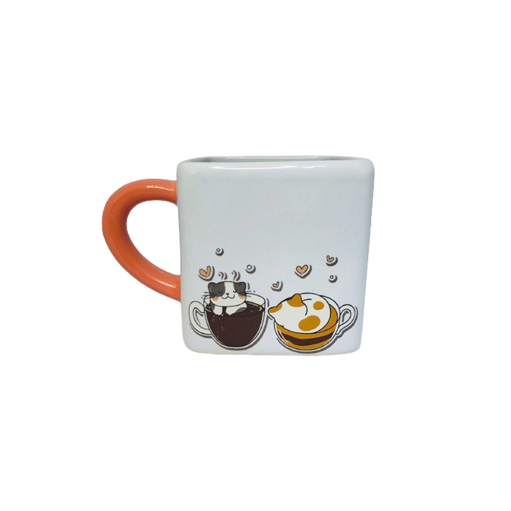 Caneca 3D Quadrada Branco Salmão Cat Love Gato Gatinho Presente Pai e Mãe de pet Namorados Xicara
