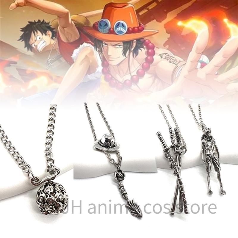 Anime One Piece Necklace Luffy Devil Fruit Zoro Ace Retro Metal Pingente Halloween Cosplay Jóias Acessórias