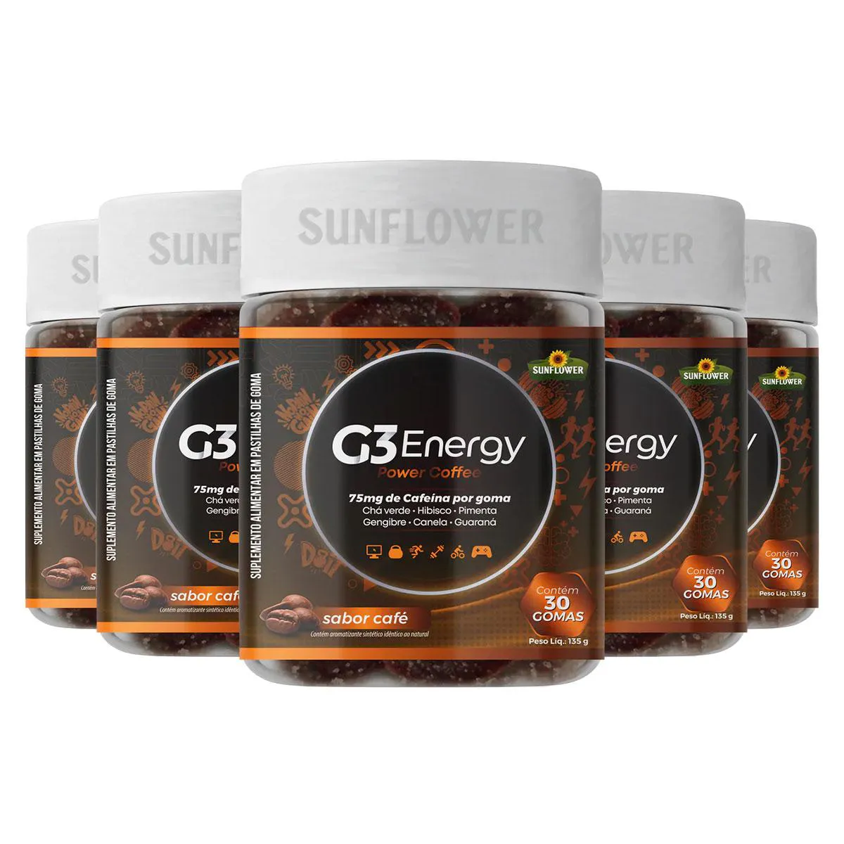 Kit Termogênico G3 Energy Power Coffee 75mg Sunflower Café 30 gomas 5 unidades
