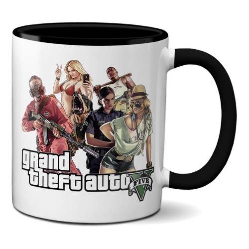 Caneca Gta V Online Gran Theft Auto Vi Alça E Interior Preto