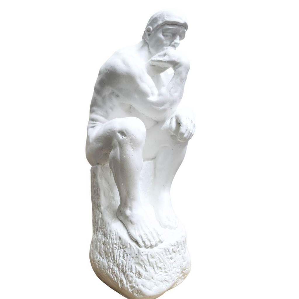 Escultura O Pensador Rodin de Gesso Cru | Peça Estatueta Decoração O Pensandor