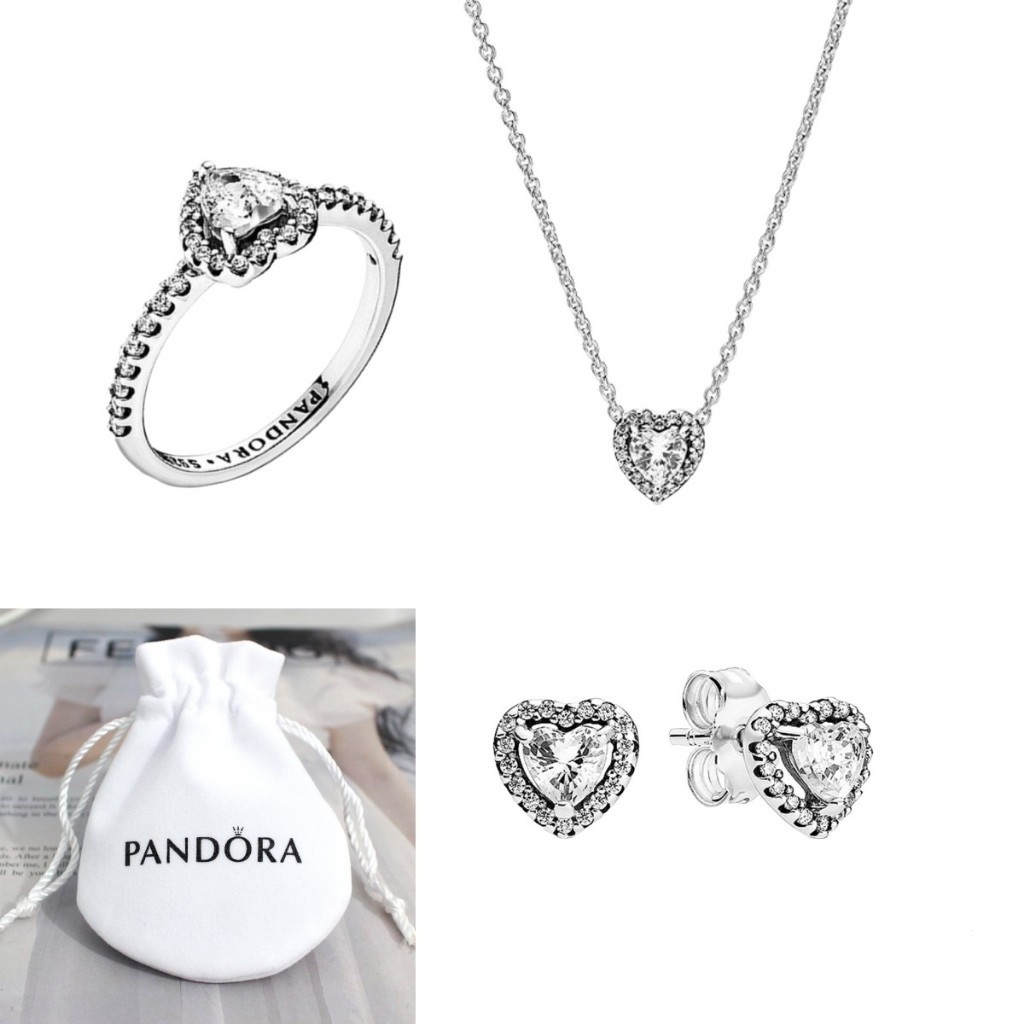 [Entrega 24 Horas] Oferta de tempo limitado S925 Brincos com Anel de Prata PAN Brincos com Conjunto de Três Peças Colar de Moda Colar de Amor Vermelho Presente de Jóias Requintado