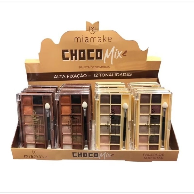 KIT COM PALETAS DE SOMBRAS MIA MAKE CHOCO MIX 12 CORES (CHOCOLATE BRANCO e CHOCOLATE AO LEITE)
