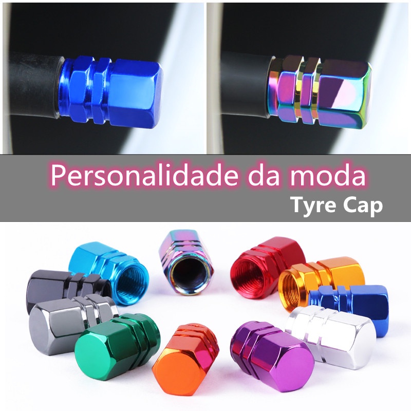 《 4PCS》5 Colors Tyre Cap Waterproof Car Wheel Accessories Tire Valve Caps Trucks Bikes Aluminum Alloy Airdust Automobiles/ Válvula tampa pneu roda carro motocicleta bicicleta