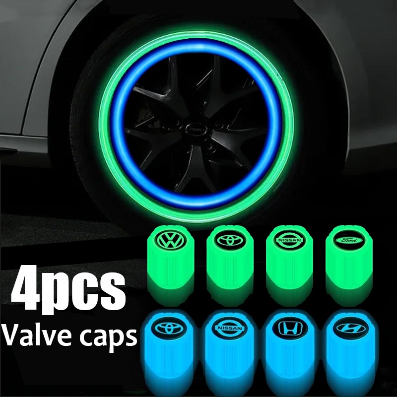 4Pcs Universal Luminous Tire Válvula De Pneus Tampa Luminosa Com Logotipo Automático