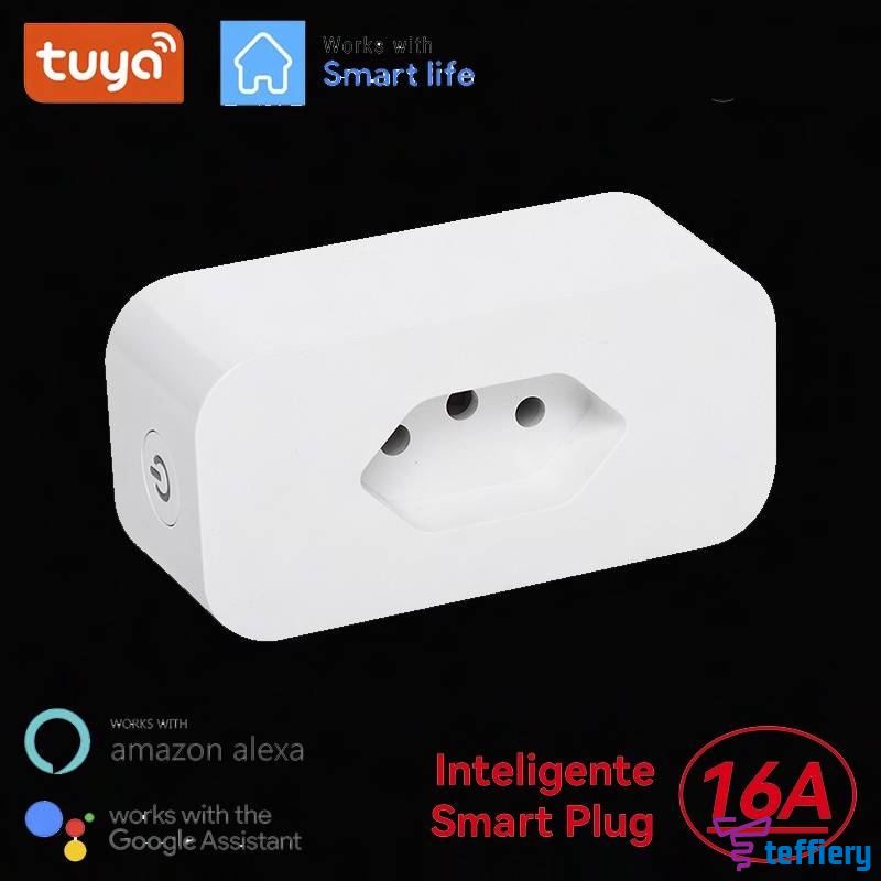 Tuya 16A tomada inteligente tomada de tomada inteligente padrão Brasil Wi-Fi Monitor de energia Alexa Google Home teffiery