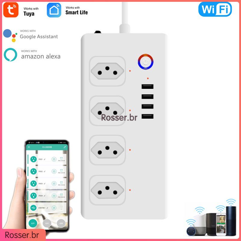 Brasil Wi-fi Smart Power Strip Tuya/Lojas de Vida Inteligente App Com 4 4usb Portas, 1.5m Cabo de Extensão de Voz Funciona Com Alexa, Inicial do Google