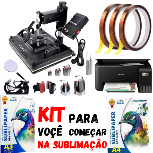 kit de sublimação com prensa deko 10x1 impressora 3250 papel dry fast a4 e papel dry fast a3 e fita termica 0.5mm.