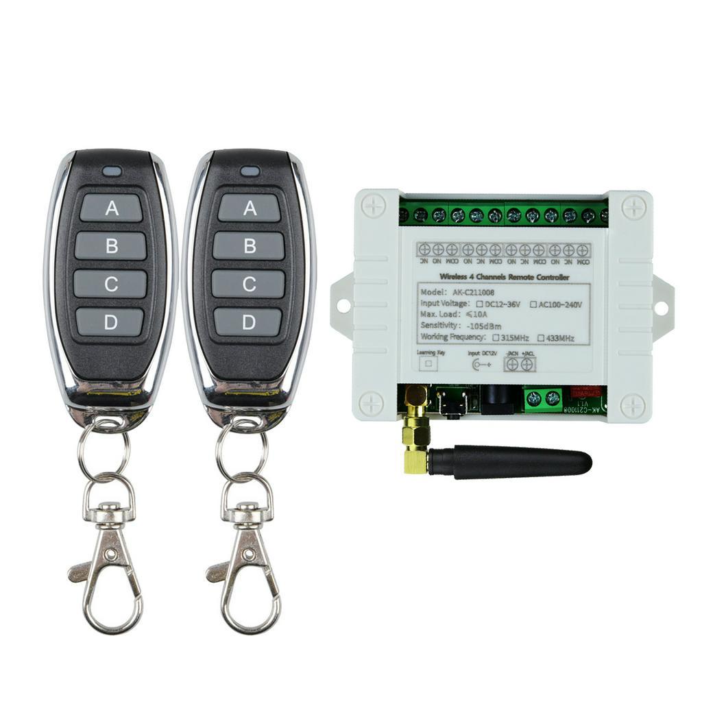 Chave De Controle Remoto Sem Fio DC 12V 24V 36V 433Mhz 4CH Receptor De Relé Com 2 Transmissores Para Abridores De Portas De Garagem , Motores , Luzes LED E Mais Controles