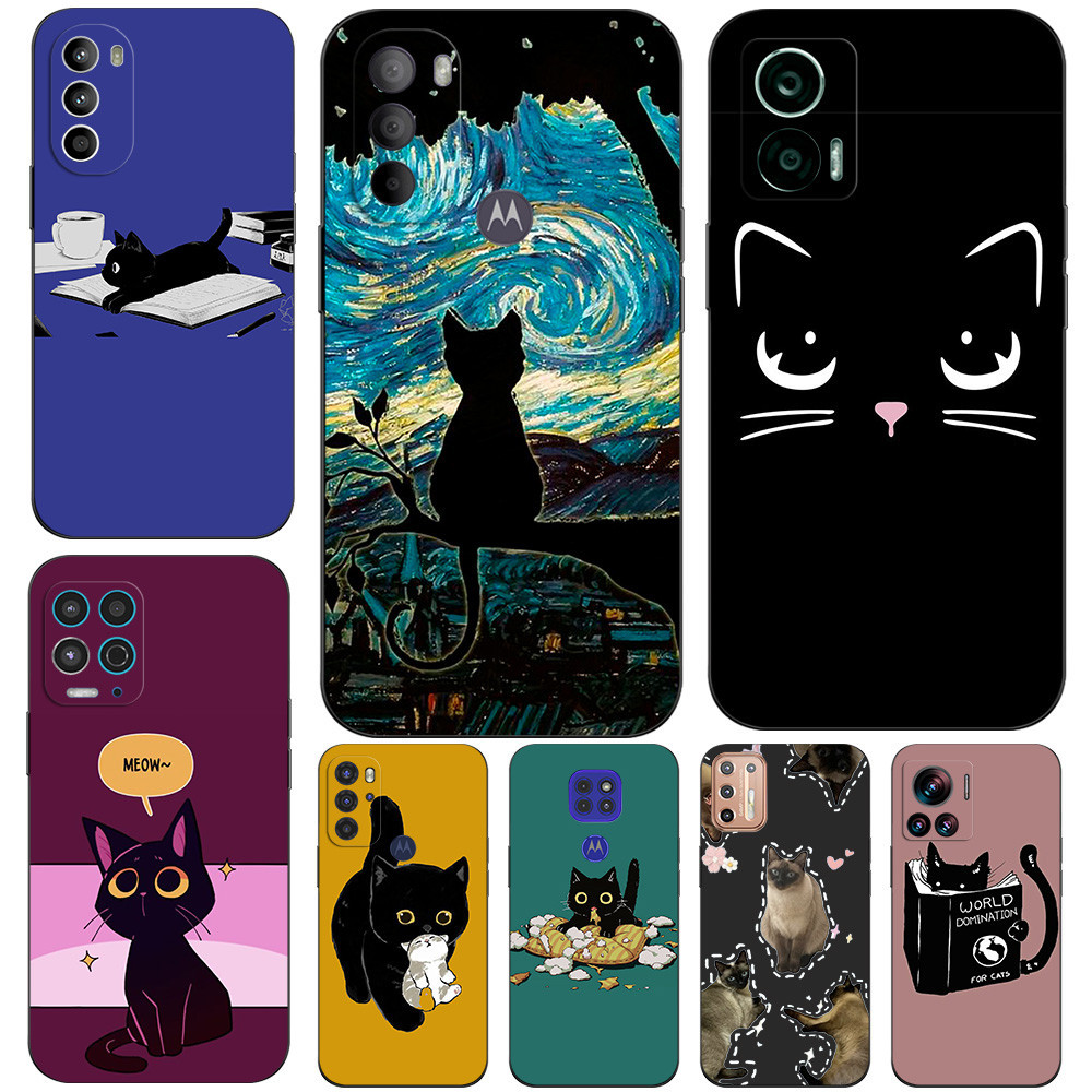 Capa Para Telefone Motorola Moto Edge 40 neo 5G G04 4G G24 G34 G14 G54 G84 De Silicone Macia Preto Gatos Cartoon Cute