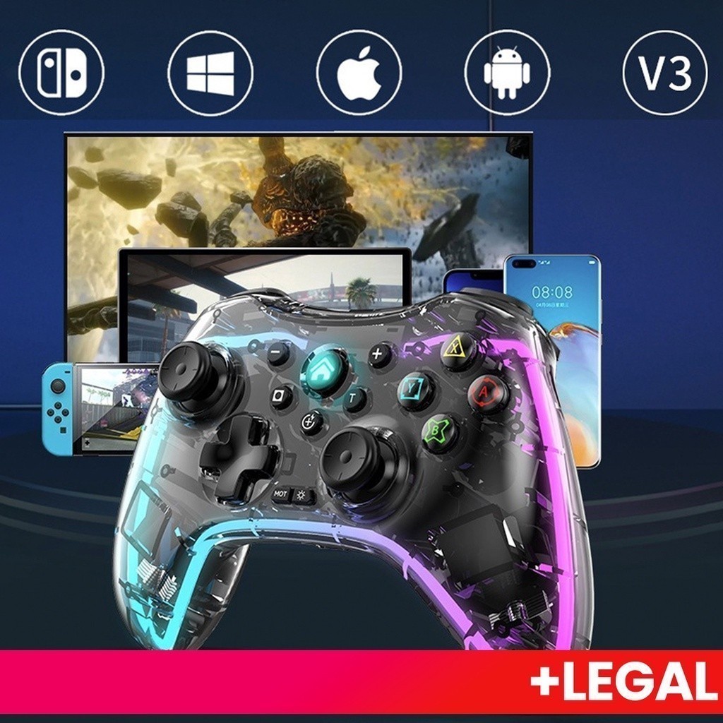 Controle Gamer Rgb P/ N-switch Ps3 Ps4 Pc Ios Android Wireless