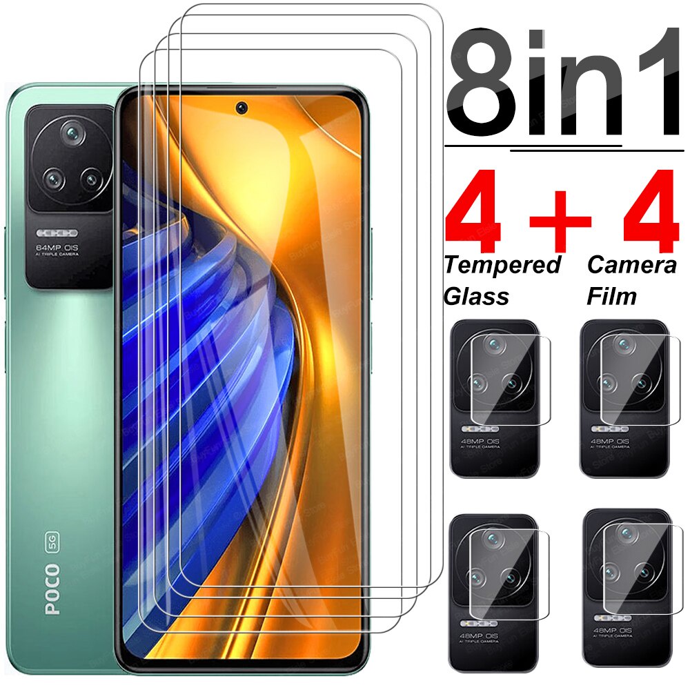 8 Em 1 Protetor De Tela De Vidro Temperado Para xiaomi Poco F4 5G Cobertura Completa Lente Filme f45g 6.67 " De Proteção