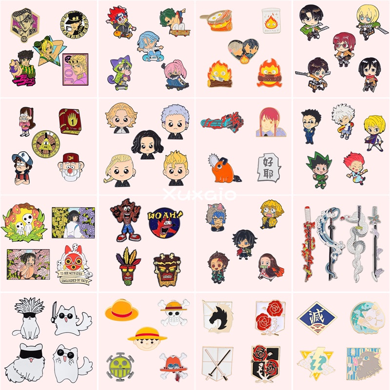 3 ~ 5pcs/set Anime Series Broche De Lapela Genshin Cartoon Personagem De Desenho Animado Ghost Slayer Esmalte Pino JOJO Design Sense Backpack Acessórios De Mochila Jóias Coleção Presente Para Amigos