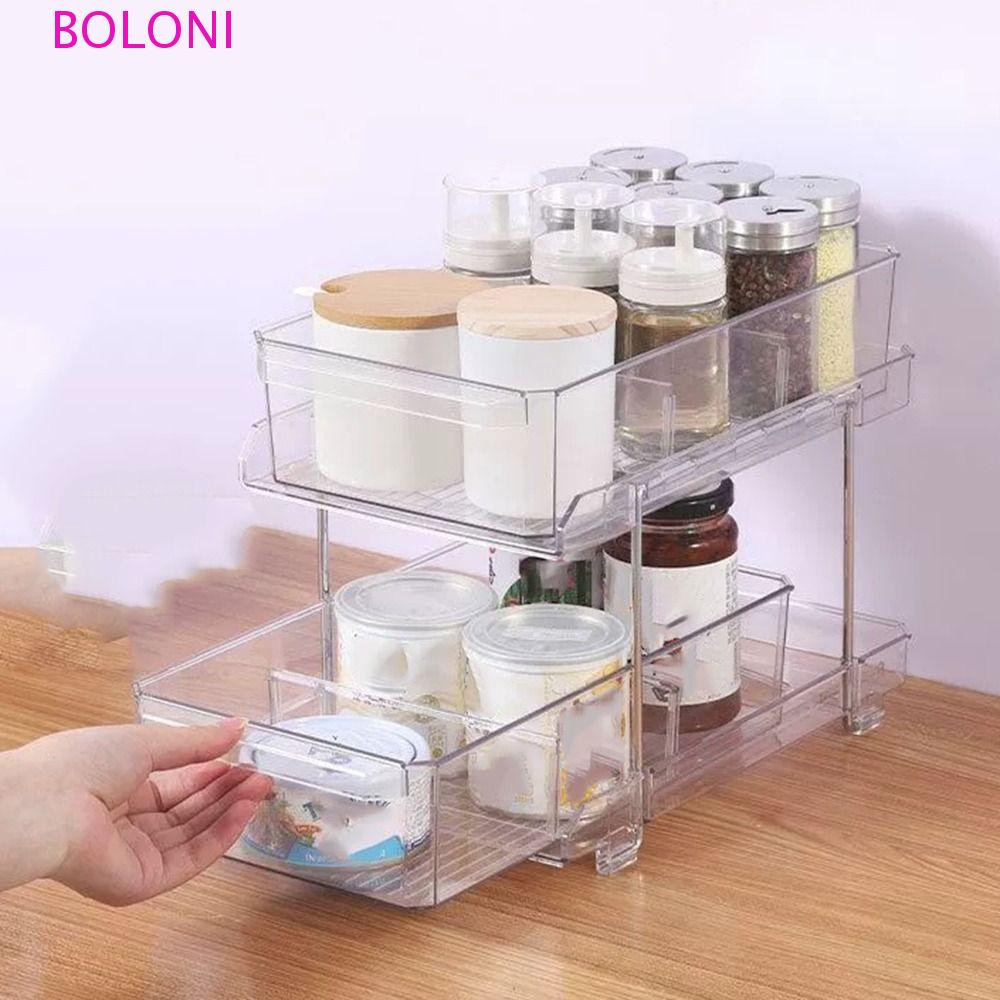 BOLONI Desktop Rack De Armazenamento , Organizador Transparente Pull-Out Com Divisórias , Creative Light Luxury 2 Tier Caixa Organizadora De Maquiagem De Grande Capacidade Banheiro