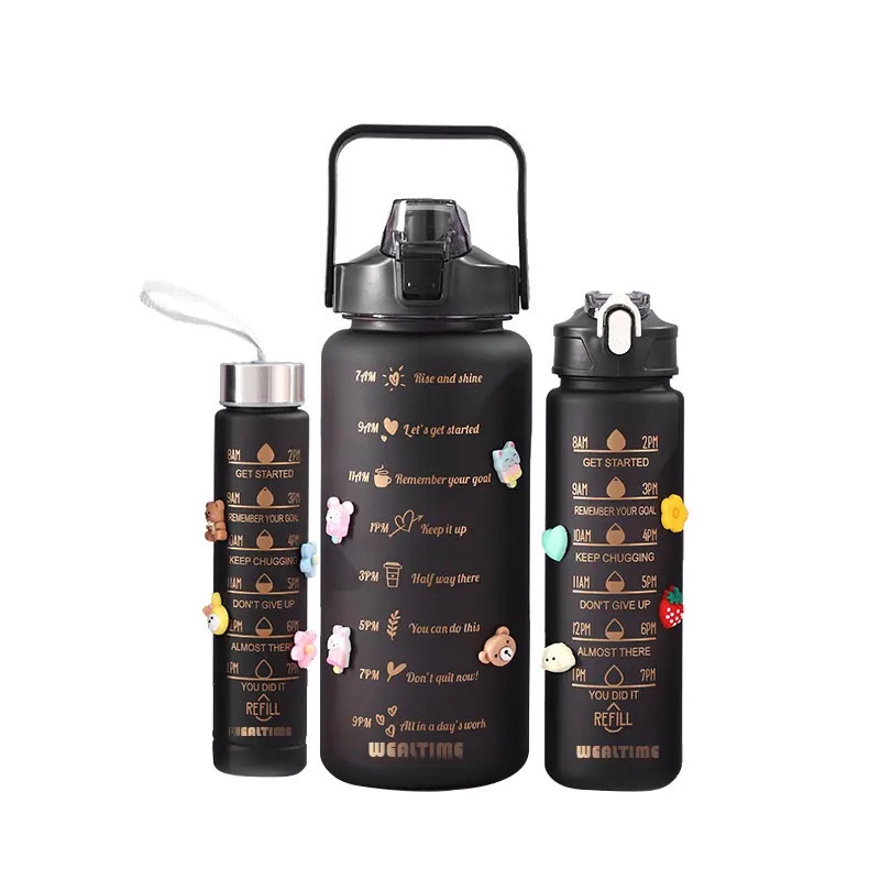 Kit3 Garrafa Copo de água esportivos/Garrafa d´Água / 500ml / 900ml e 2l / Galão Com Adesivos Lembretes para Beber Água