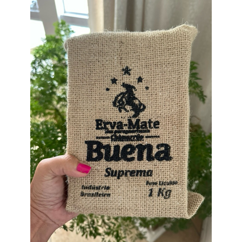 Erva mate Buena Suprema, sem adição de açúcar , não contém glúten , sabor incomparável , junto dessa embalagem de juta que só por ela você vê a qualidade da erva