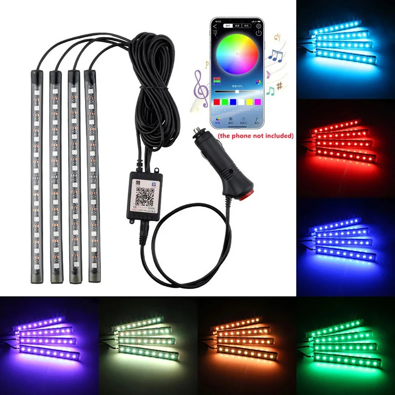 Fita LED Neon Som Automotivo RGB 7 Cores, Luz Interna Decoração com Controle Remoto para Painel e Interior do Carro