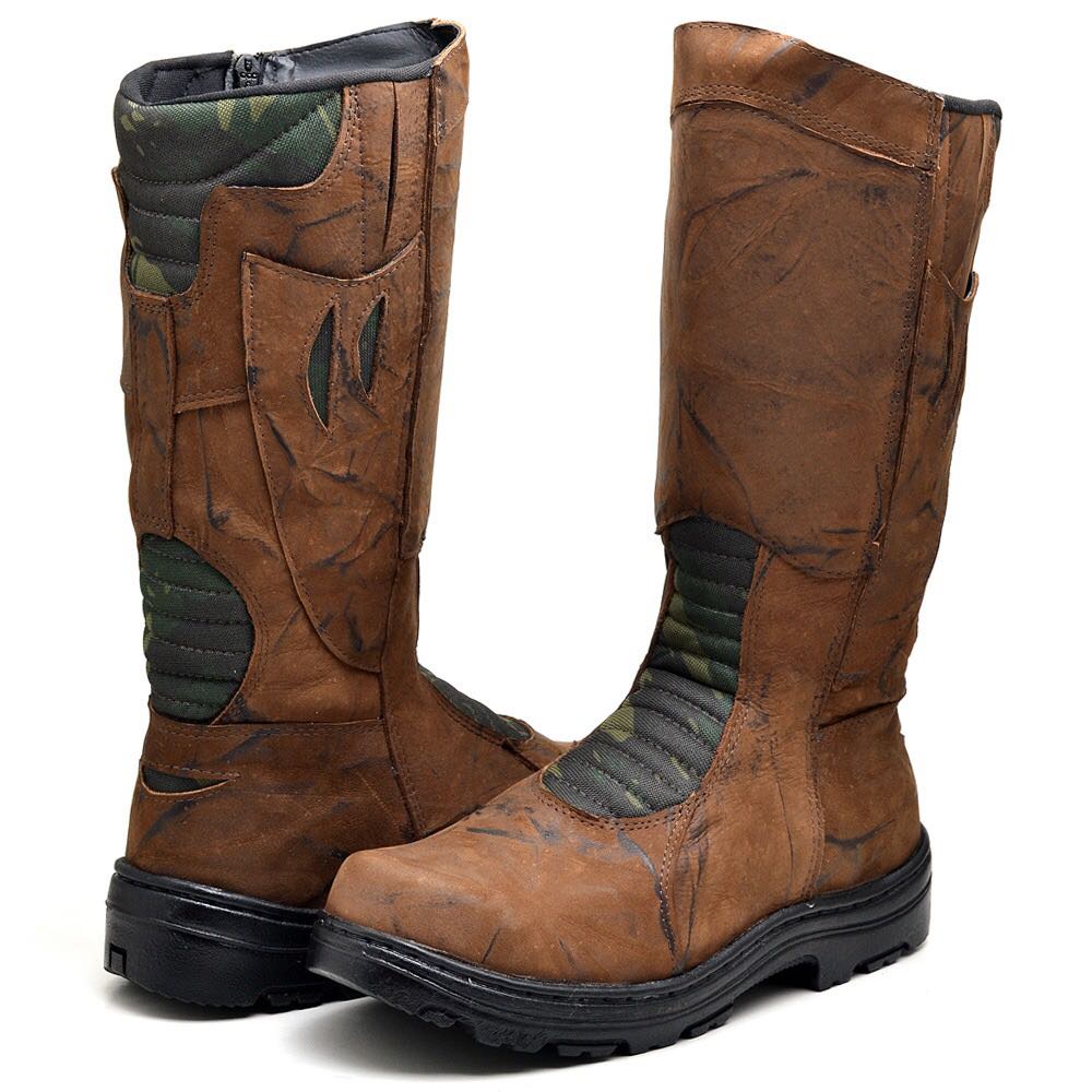 Bota Coturno Camuflado Caça E Pesca Cano Longo Unissex Em Couro