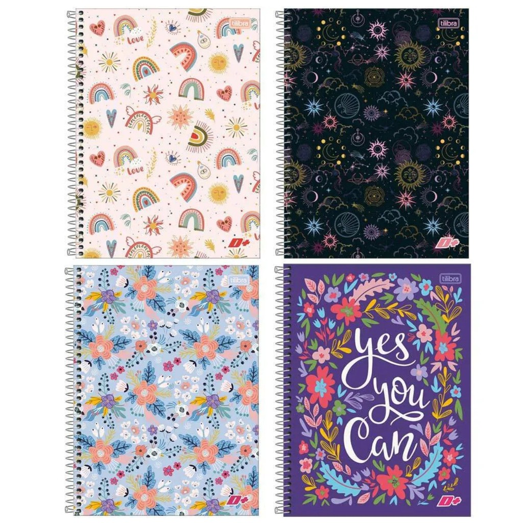 Kit 4 Cadernos Espiral Universitário 1 Matéria 96 Folhas Feminino D+ Tilibra