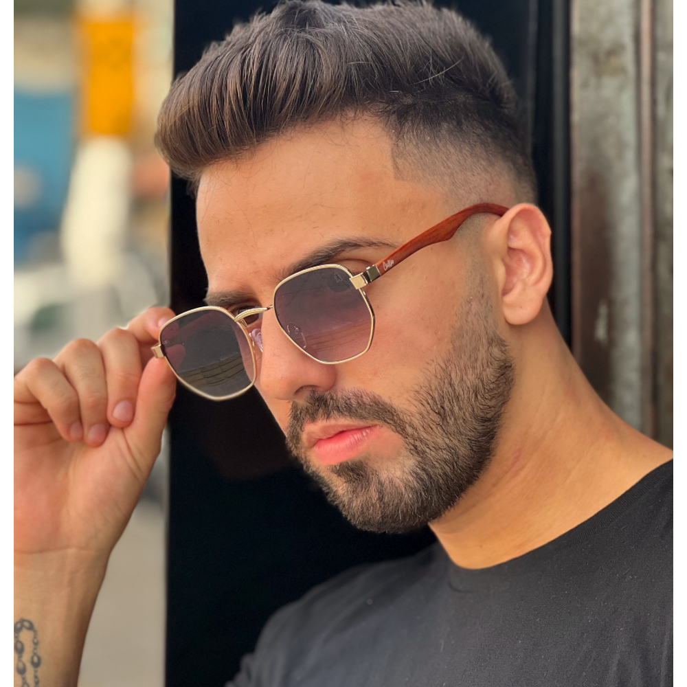 Óculos de Sol Hexagonal Unissex com Haste de Madeira e com uv400 - Hawai