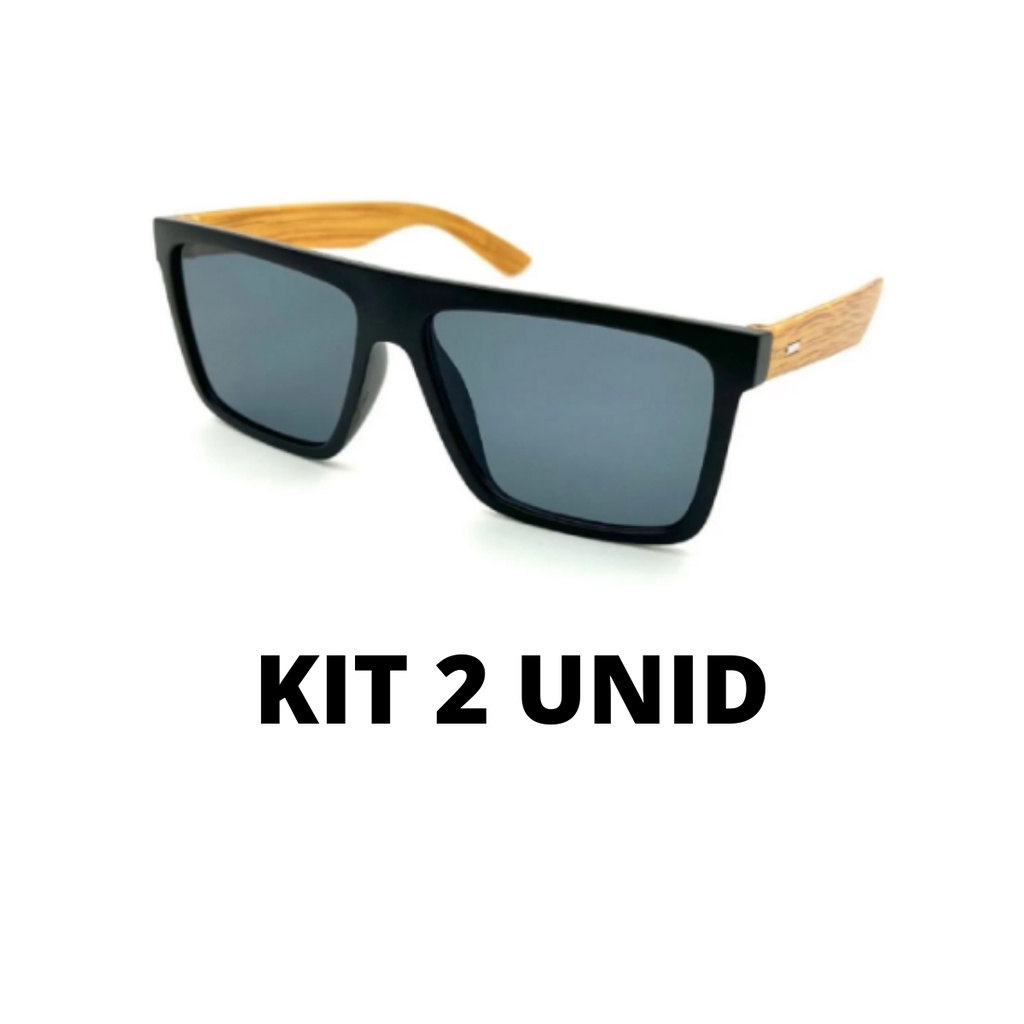 Kit Óculos de Sol Quadrado Masculino UV400 Estilo Justin Madeira Acetato Premium Unissex