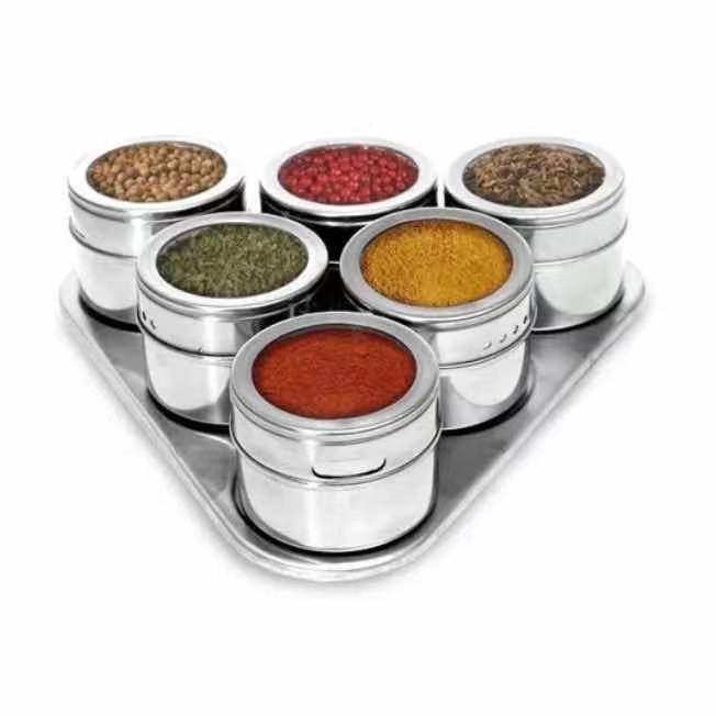 Kit 6 Porta Tempero Porta Condimento Inox Magnético Com Imã Para Geladeira e Suporte