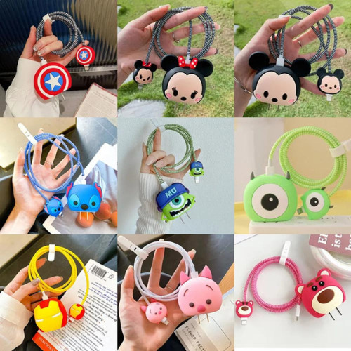 2PCs Cute Disney Cartoon Marvel Batman Protetor De Cabo Adequado Para iPhone 11 12 iPad 18W 20 Fio De Silicone Proteção Rápida Do Carregador De Dados Organizar