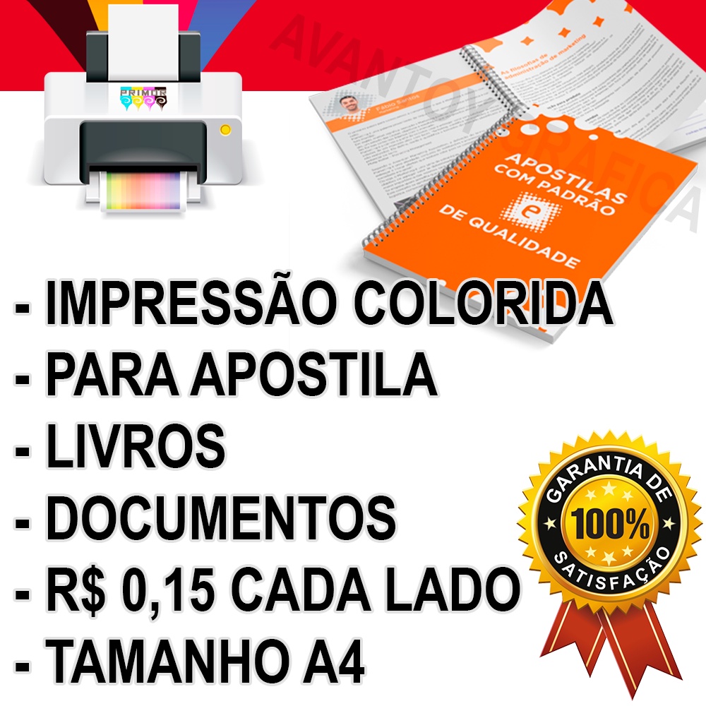 Impressões colorida A4 frente e verso para apostilas, planner, livros entre outros