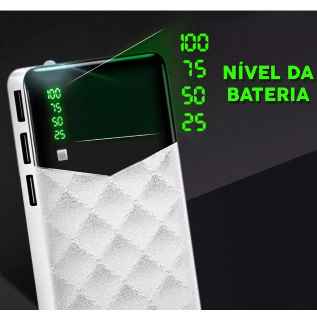 Carregador Portátil Celular 10.000mah Com 4 Cabo Bateria Externa Power Bank Branco Com suporte e luz