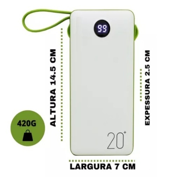 Carregador Portátil Power Bank 20000mAh Universal com Cabo V8 Lightning e Tipo C Bateria Externa Carga Rápida (COR SORTIDA)