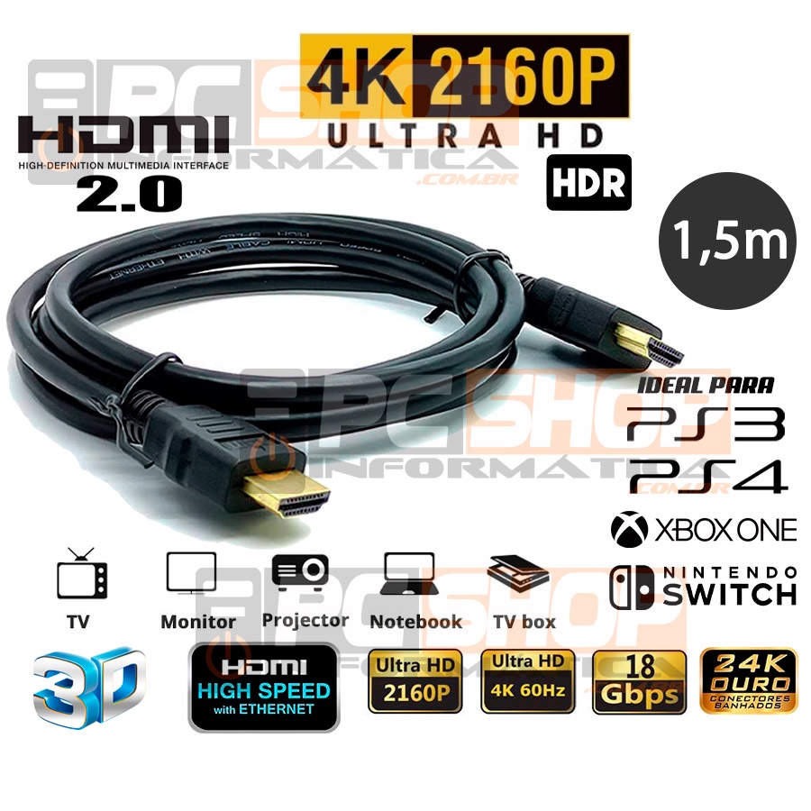 Cabo HDMI 4K 2.0 1,5m 2160p Ultra HD HDR 3D 19pin Ultra High Speed