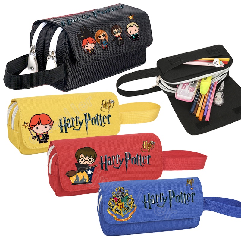 Harry Potter Lápis Casos De Grande Capacidade Saco De Papelaria Estudante Dupla Camada Zipper Criança Caneta De Lona Bolsa De Estudo Presentes