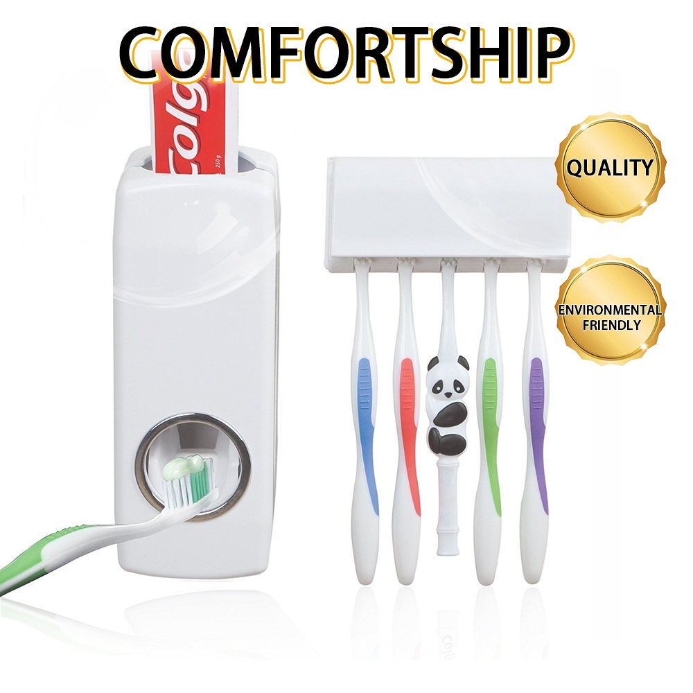 COMFORTSHIP>>Dispenser Aplicador De Pasta de Dente 2 En 1 Soporte E Suporte De Escova Para Uso No Banheiro