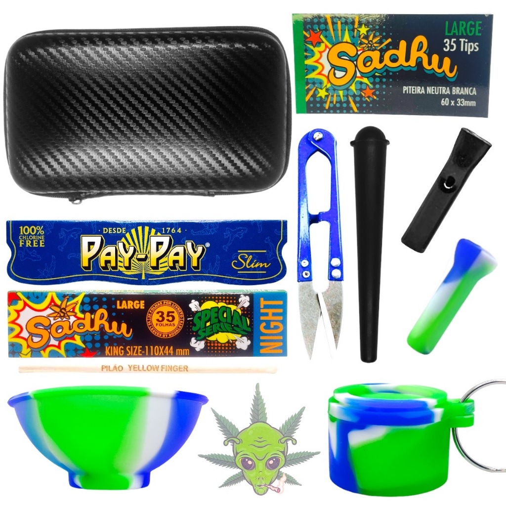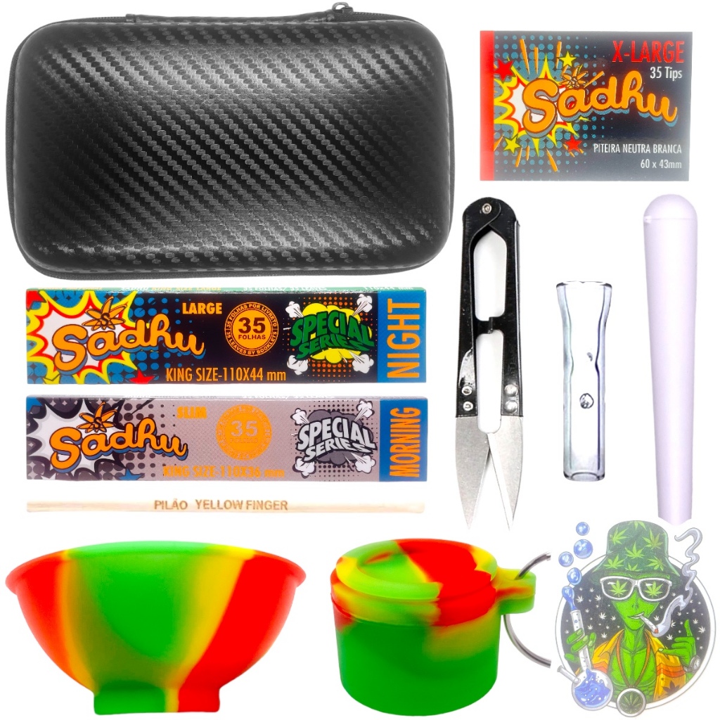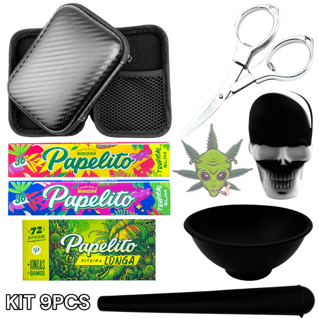 Cuia de Silicone + Tesoura Poda + Case Estojo Bag Luxo Couro + Tubete Tubo Moco + Papel + Alongador Redutor Danos Tesourinha Pote Bowl TIjela de Silicone Multiuso Cozinha Kit Triturar Alimentos Armazenar Acessórios Utilitários Moldes Cupcake Bolinhos