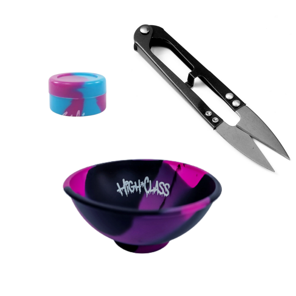 Cuia de Silicone + Tesoura + Pote de silicone HighClass Preto Tie Dye - Colorida